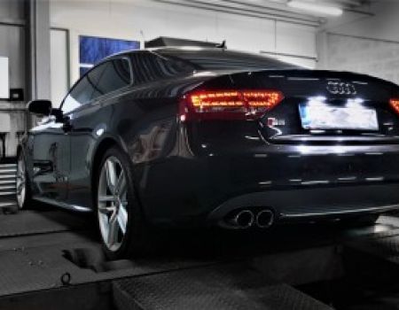 The Audi S5 Coupé is the embodiment of sport and unlimited driving pleasure. Perfectly balanced proportions coupe. The perfect modernity of the pure form together with the elements characteristic of S models, such as double slats on the radiator grille, mirror casings finished in aluminum or the S5 emblem on the grill creates a whole which clearly at first glance with which car we deal. Under the hood of an athletic coupe from Ingolstadt, we find a forked, 8 cylinder unit made in FSI technology generating 354KM. The iconic Quattro all-wheel drive based on the Torsen mechanism is responsible for the transmission. Transmission is a traditional, manual, 6-speed transmission. At the customer’s request, we have expanded the STAGE 1 software to launch the gas-free shot option, i.e. Pops & bangs.