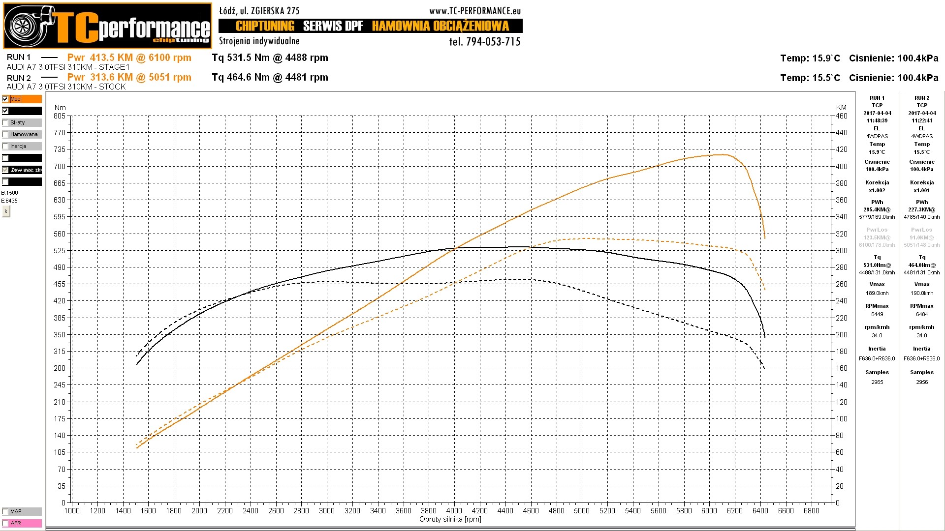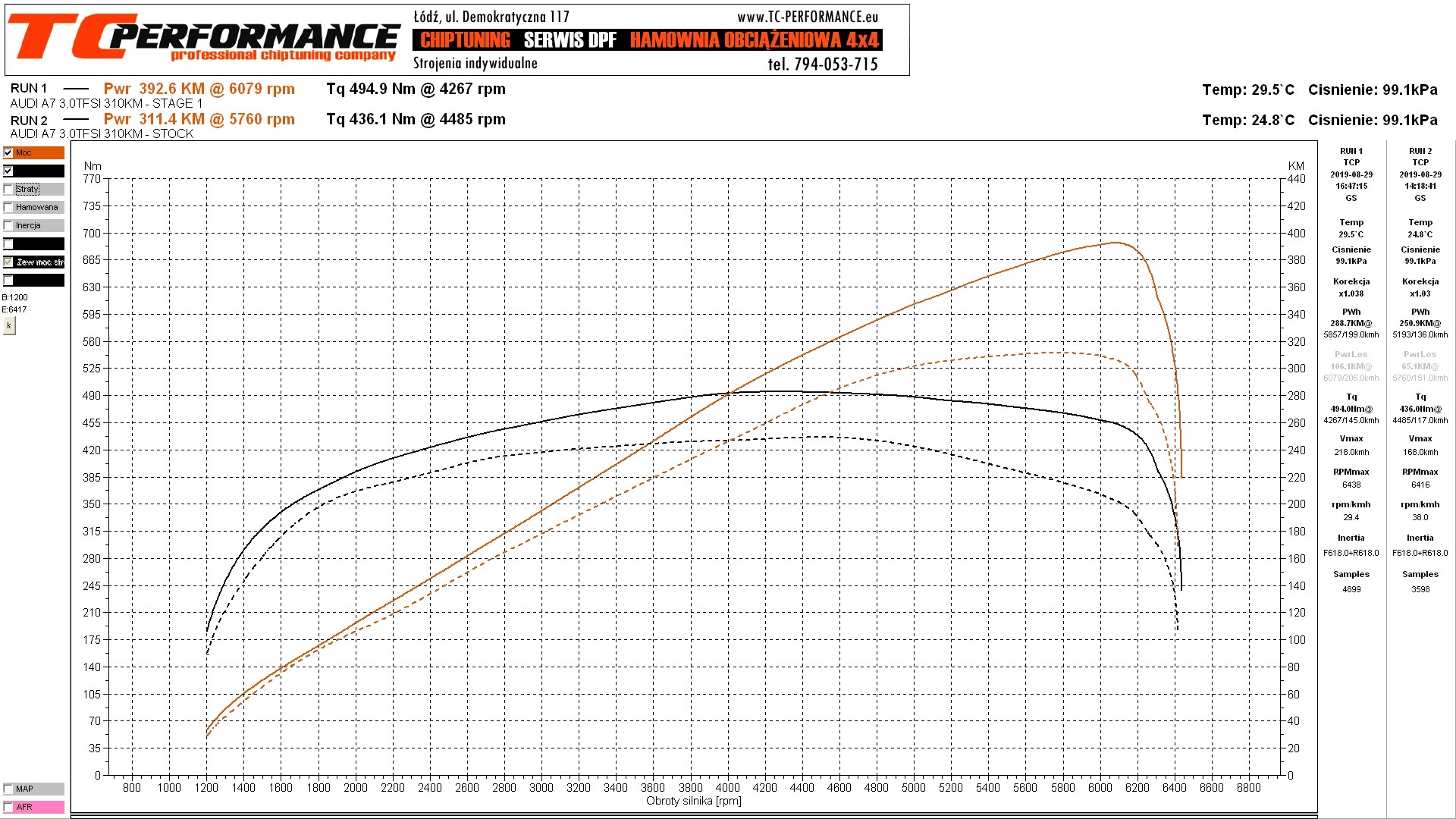 Audi A6 3.0 TFSI 300hp is a car susceptible to ECU tuning. Our experience and knowledge about modifications and the results of our work are confirmed by the diagrams obtained on a professional chassis dynamometer 4x4.