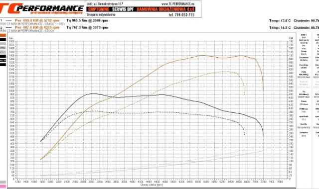 Audi A6 RS6 4.0 TFSI Performance - 605hp is a car susceptible to ECU tuning. Our experience and knowledge about modifications and the results of our work are confirmed by the diagrams obtained on a professional chassis dynamometer 4x4.
