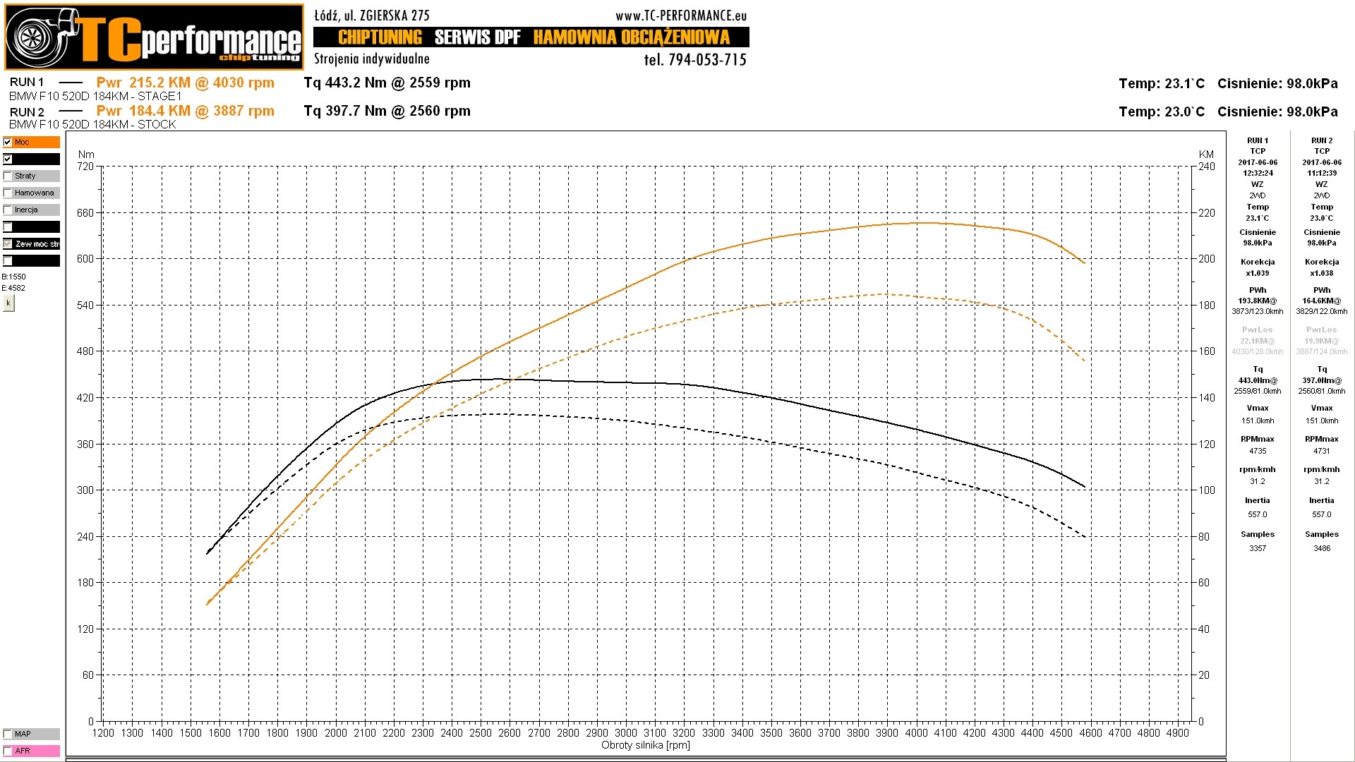 Car testing results before and after increasing the power, show real benefits of chip tuning BMW 2 serie 220D - 184hp.