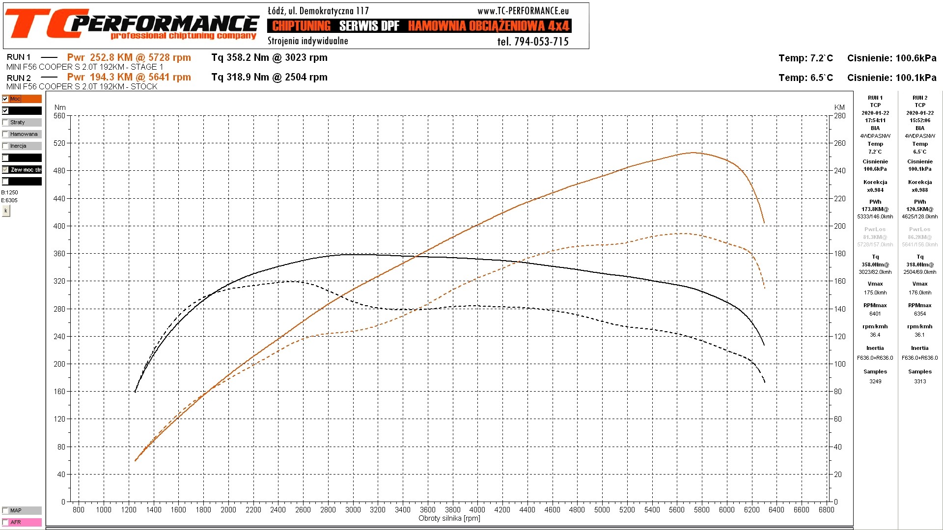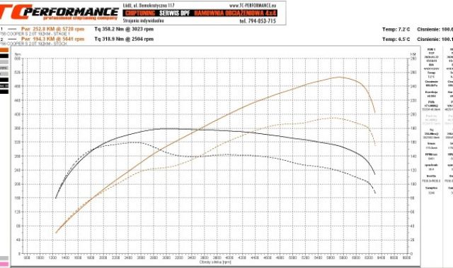 Mini Cooper S 2.0T 192hp is a car susceptible to ECU tuning. Our experience and knowledge about modifications and the results of our work are confirmed by the diagrams obtained on a professional chassis dynamometer 4x4.
